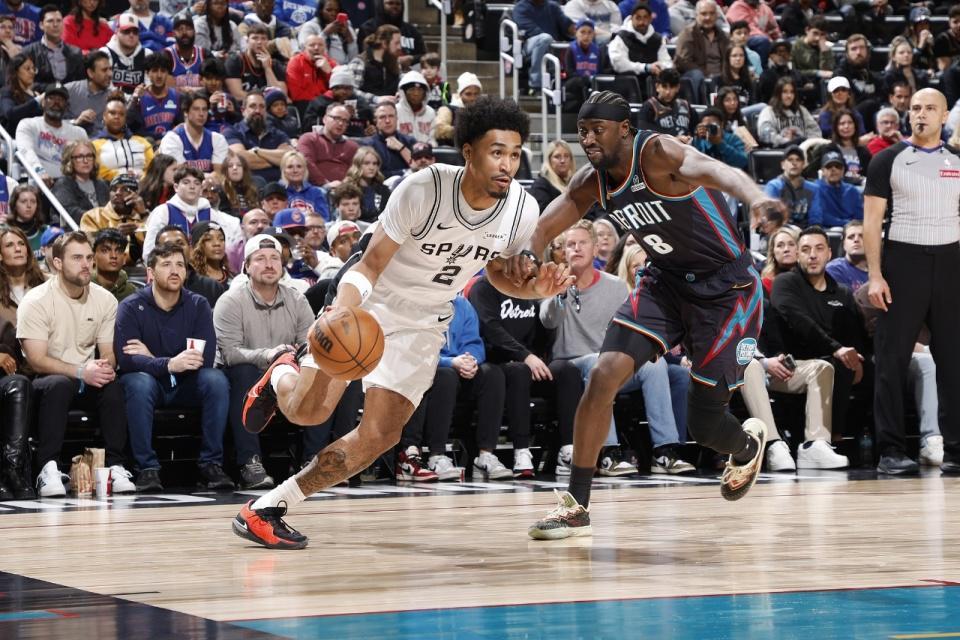 次节比赛,马刺进攻火力升级本场首次单节得分30+,且限制活塞连续两节单节不足30分。马刺追到29-29,活塞一波6-0攻势取得领先,马刺连中三分一波9-0攻势夺回领先。马刺继续维持47-45领先,坎宁安推倒卡斯尔引发冲突,凯尔登推搡坎宁安,杜伦手指凯尔登,裁判吹罚凯尔登与杜伦技术犯规。活塞一波6-1攻势反超3分,马刺回敬9-4攻势,马刺单节33-28净胜5分,上半场结束马刺57-55反超活塞。前两节比赛,马刺三分22中11,瓦塞尔5记三分18分与尚帕尼4记三分12分,文班亚马9中2得到7+7;活塞三分18中5,坎宁安10+3+6与霍兰11+6。